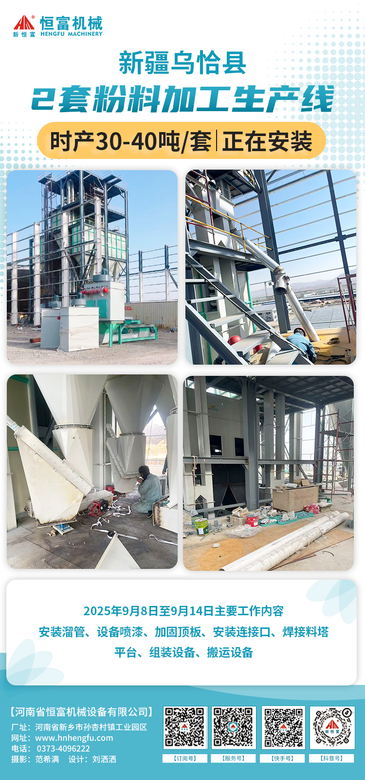 上周,恒富机械有5套成套设备正在安装。
